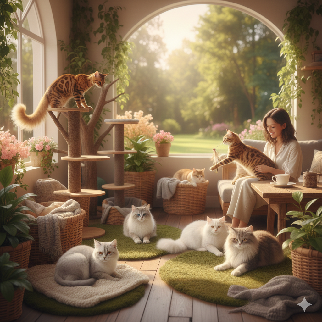 我从小就特别偏爱那些毛茸茸的小生命。在教室、校园和图书馆穿梭的日子里,是路边那些晒太阳的流浪猫教会了我:无论世界多么忙碌,都要记得留一点时间去感受阳光。 创办这家猫咖,是我送给这个世界的一封情书。我不仅想给这些猫咪一个温暖的避风港,更想在这个快节奏的城市里,为每一个疲惫的灵魂搭建一个“充电站”。